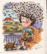 We’ve had an engaging storyline written by the well known children's author Kyle Mewburn… there have been many previous iterations and I’ve drawn many illustrations to present to publishers,….but we havn’t signed up with anyone yet.